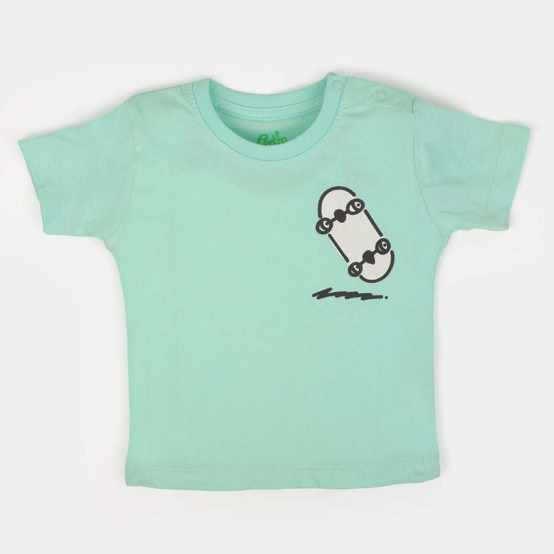 Infant Boys Cotton Round Neck T-Shirt Skate - Sea Green