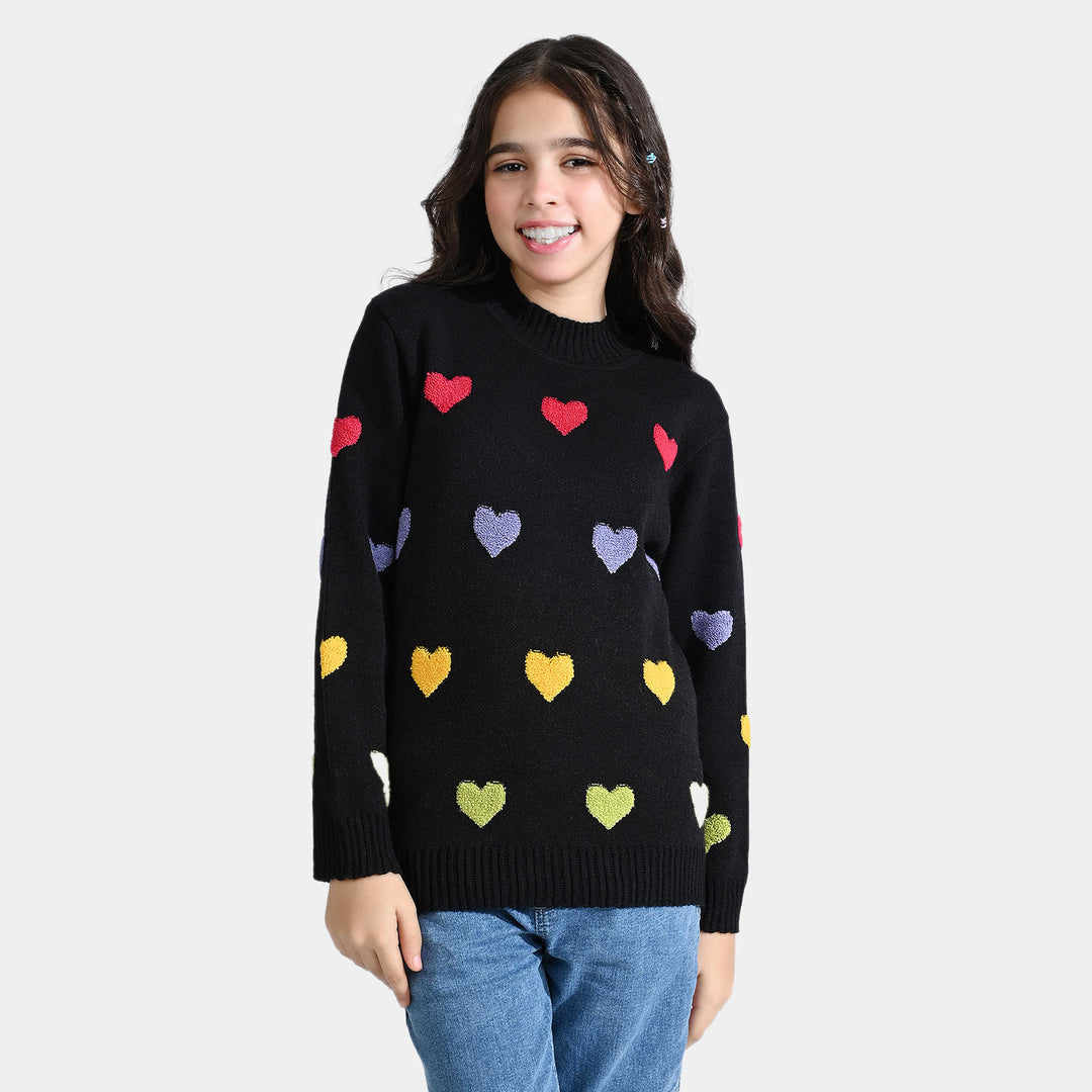 Girls VPN-Acrylic Sweater Chenille Heart-BLACK