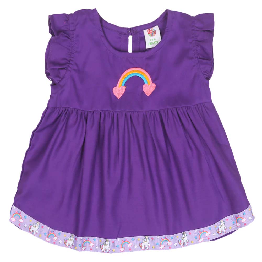 Infants Girls Embroidered Top Rainbow Embroidery - Purple