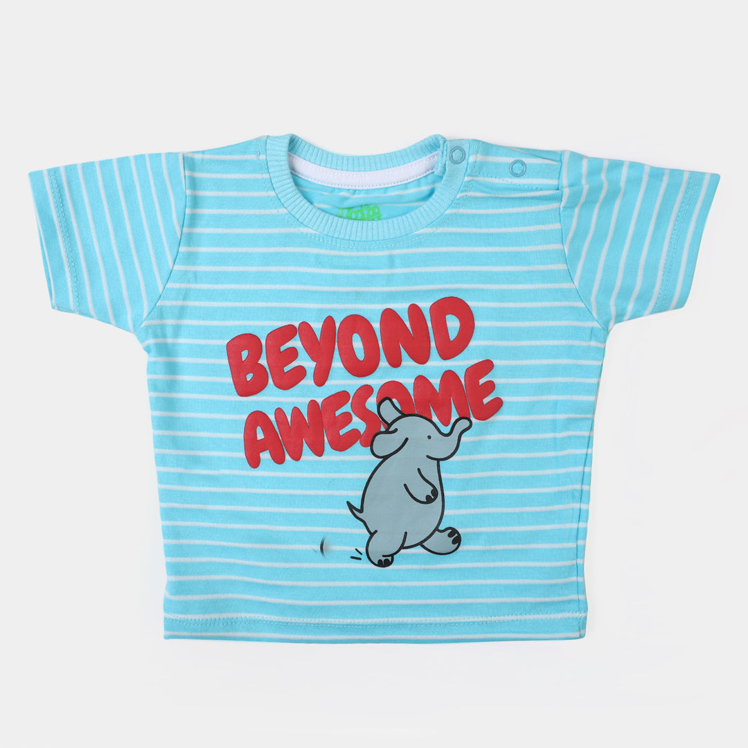 Infant Boys Cotton Round Neck T-Shirt Beyond Awesome - L-Blue