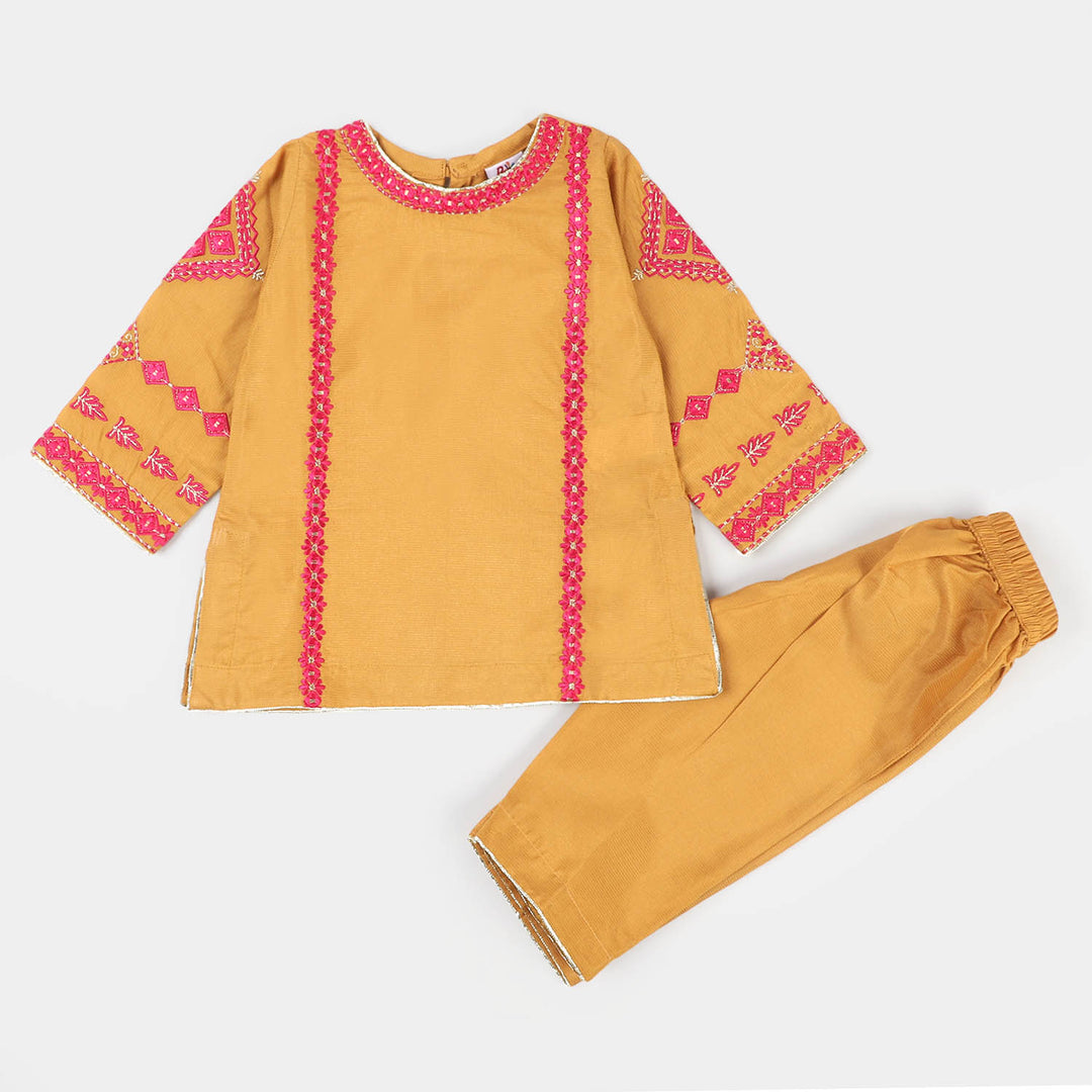 Infant Girls Jacquard 2Pcs Suit Rim Jhim - Golden