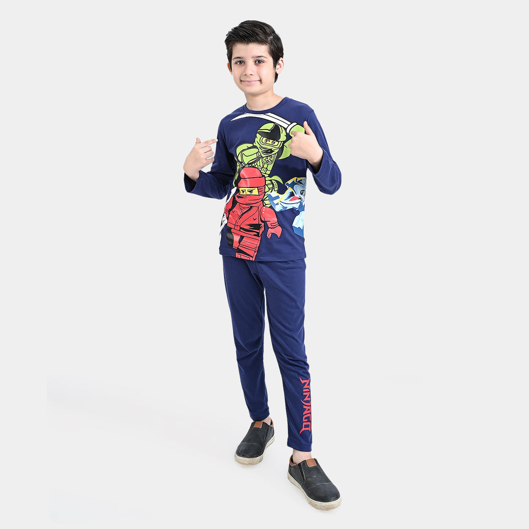 Boys Poly Cotton Jersey Knitted Nightwear-Navy Blue