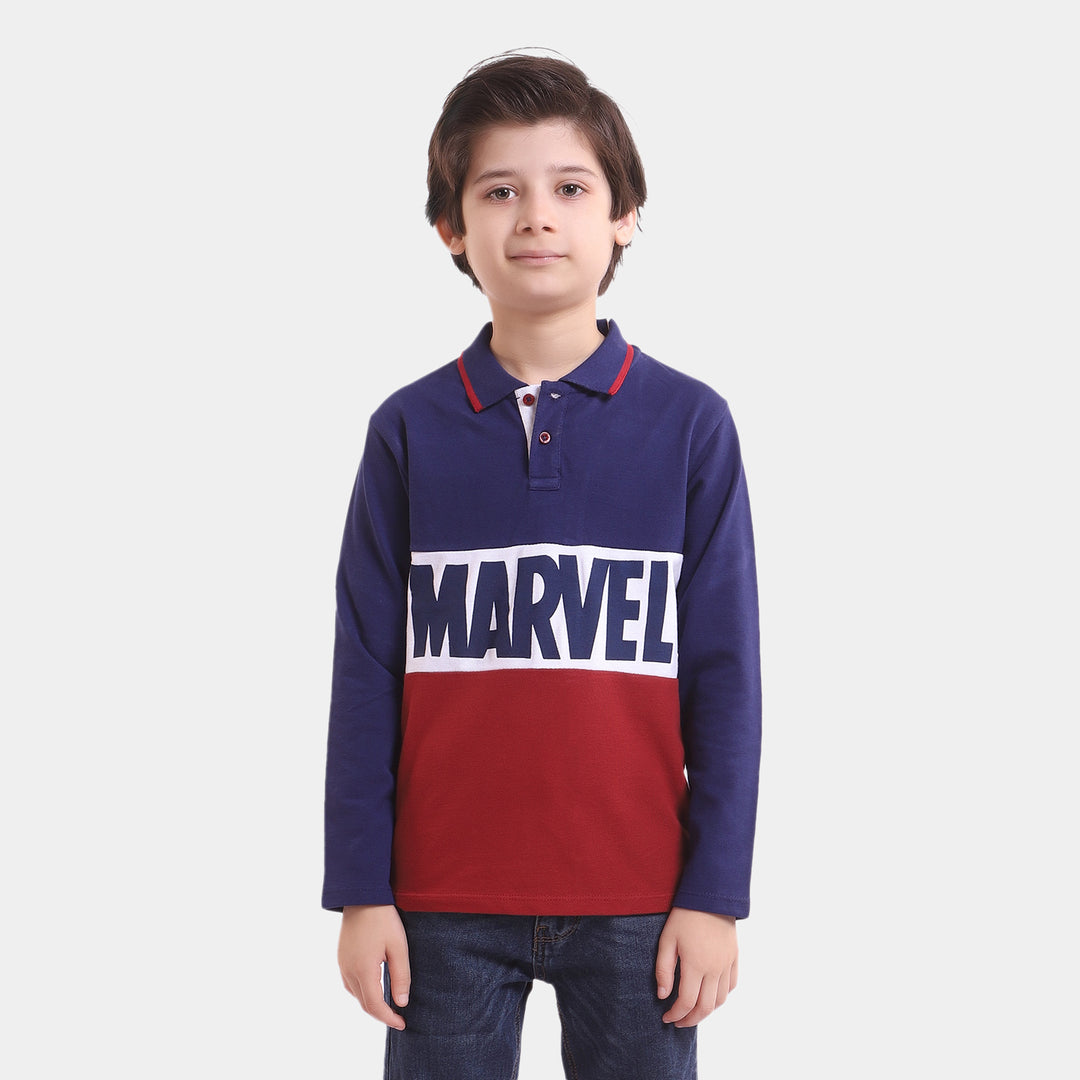 Boys Cotton Polo T-Shirt Character - Navy Blue