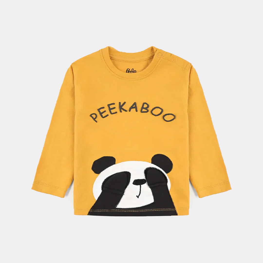 Infant Boys Cotton Jersey Round Neck T-Shirt Panda- Yellow