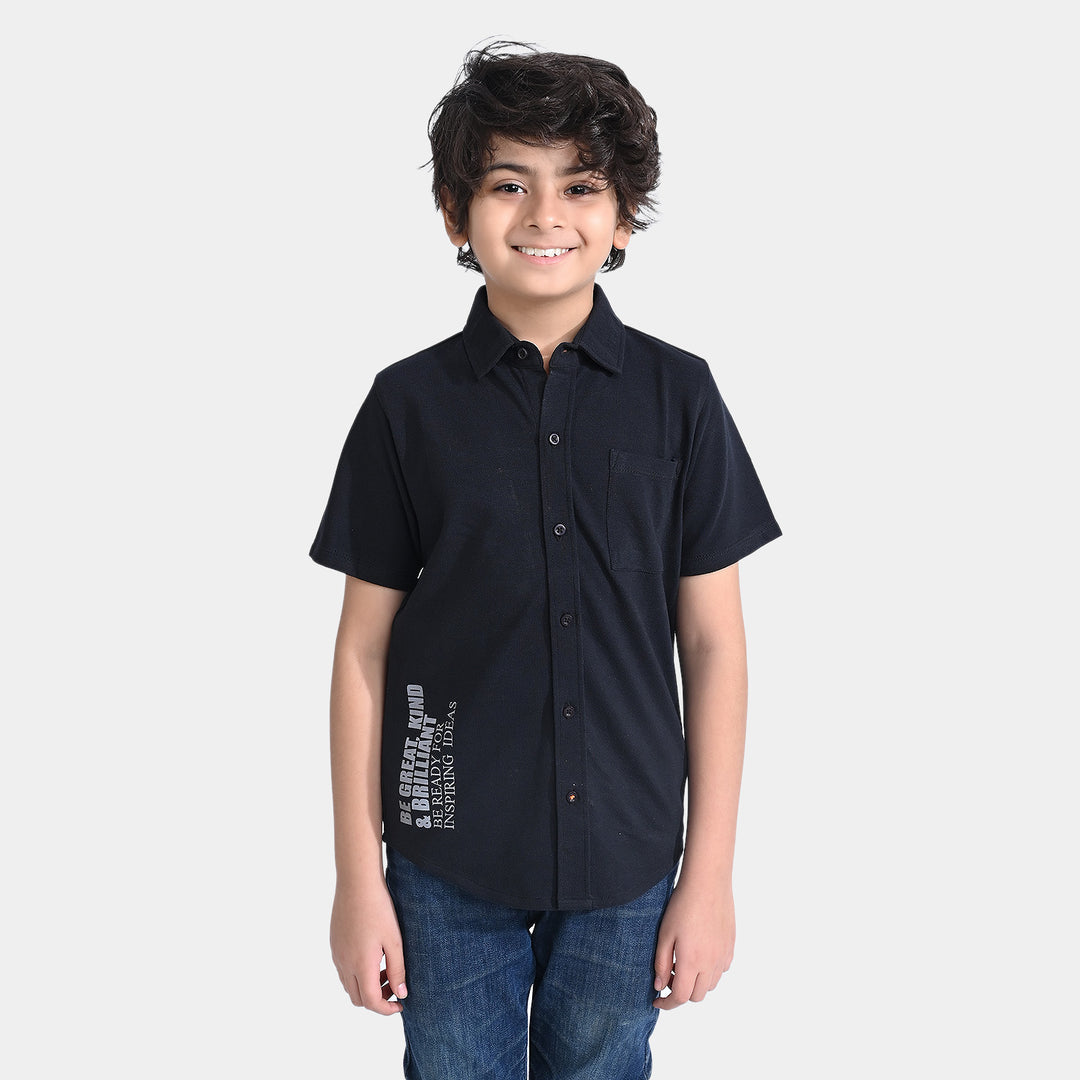 Boys Cotton PK Casual Shirt H/S Be Great-BLACK