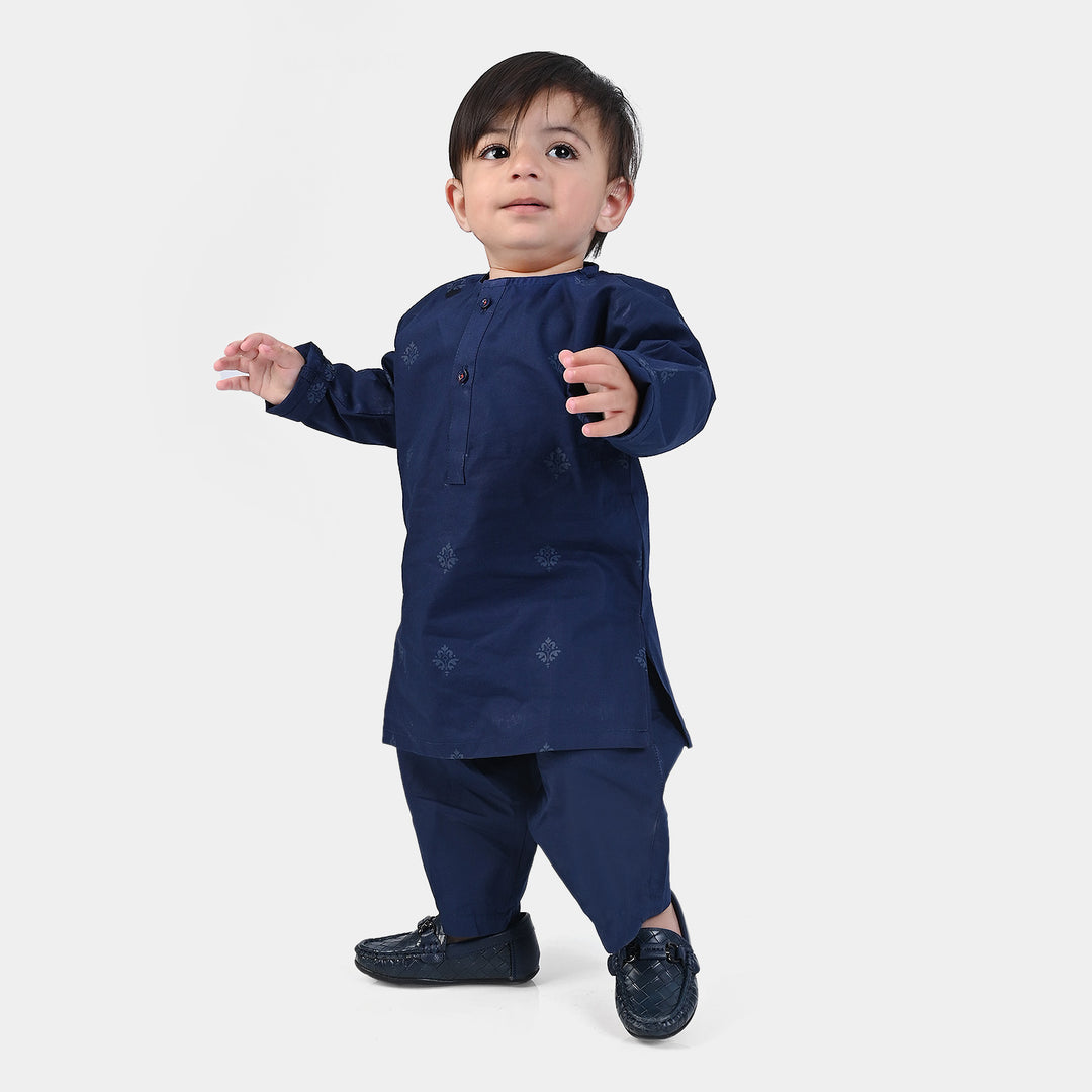 Infant Boys Cotton Poplin 2PC Suit (Screen Print)-NAVY