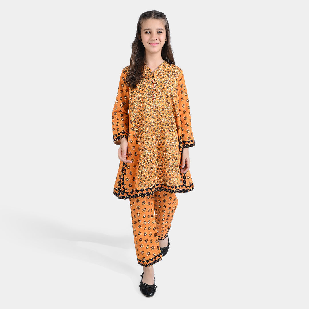 Girls Cotton Slub Printed 2 PCs Suit Bahaar-Mustard