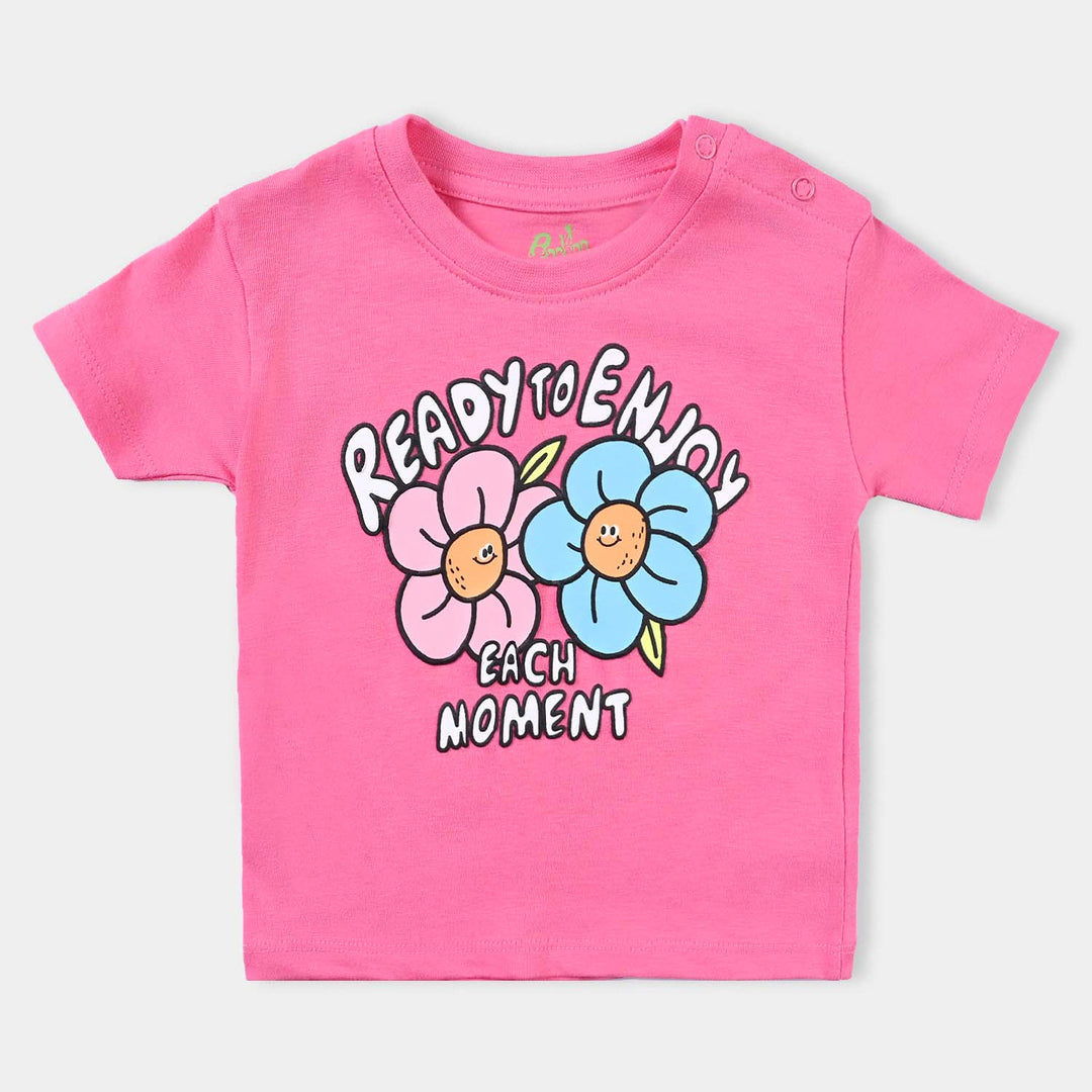 Infant Girls Cotton Jersey T-Shirt Ready To Enjoy-Hot Pink