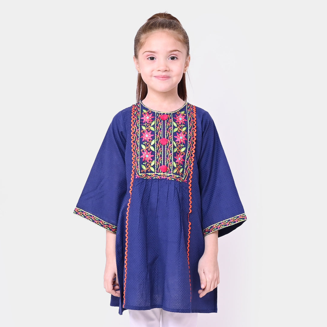 Girls Jacquard Embroidered Kurti Garden - NAVY