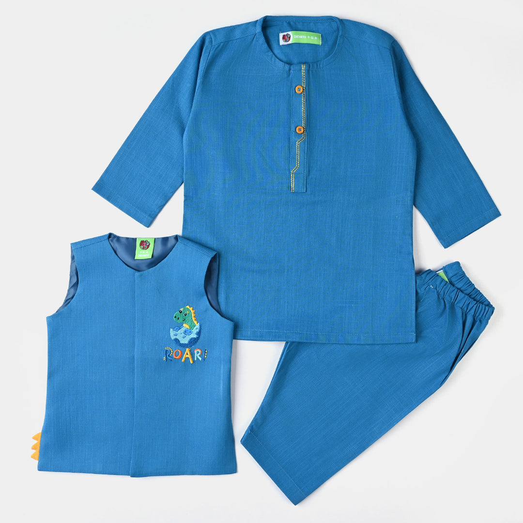 Infant Boys Cotton Slub 3-Piece Suit (Roar)-Turkish