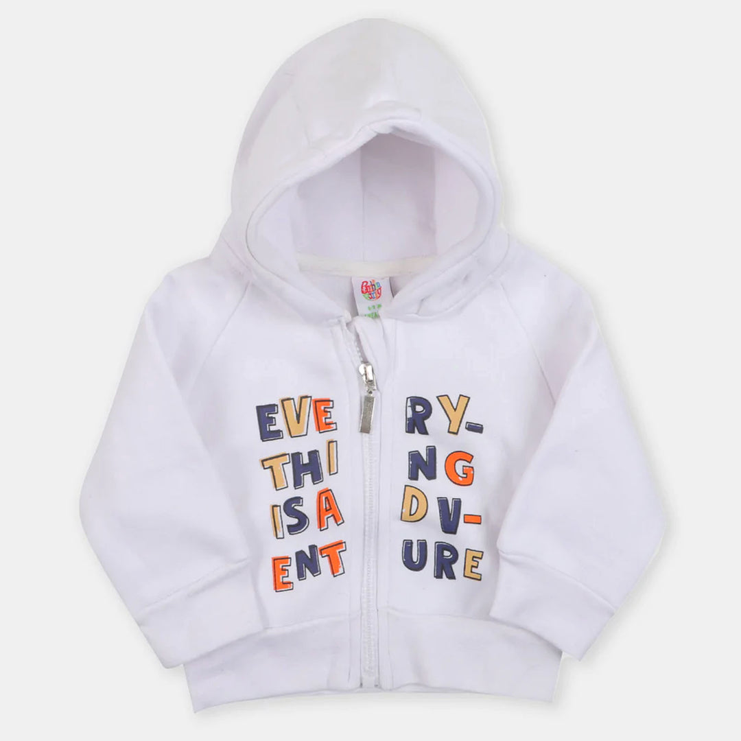 Infant Boys Hooded Knitted Jacket Lion- Winter White
