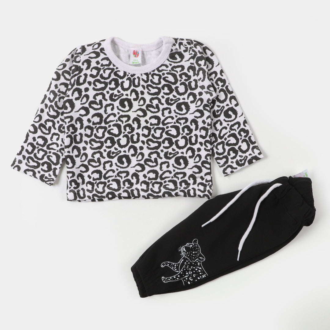 Infant Girls Knitted Suit Leopard Print- White/Black
