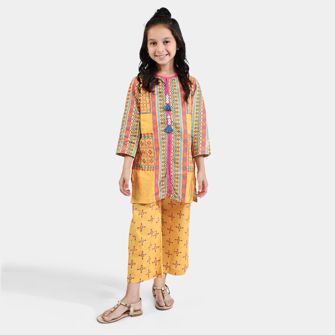 Girls Cotton Poplin Printed 2PC Suit Miral-Yellow