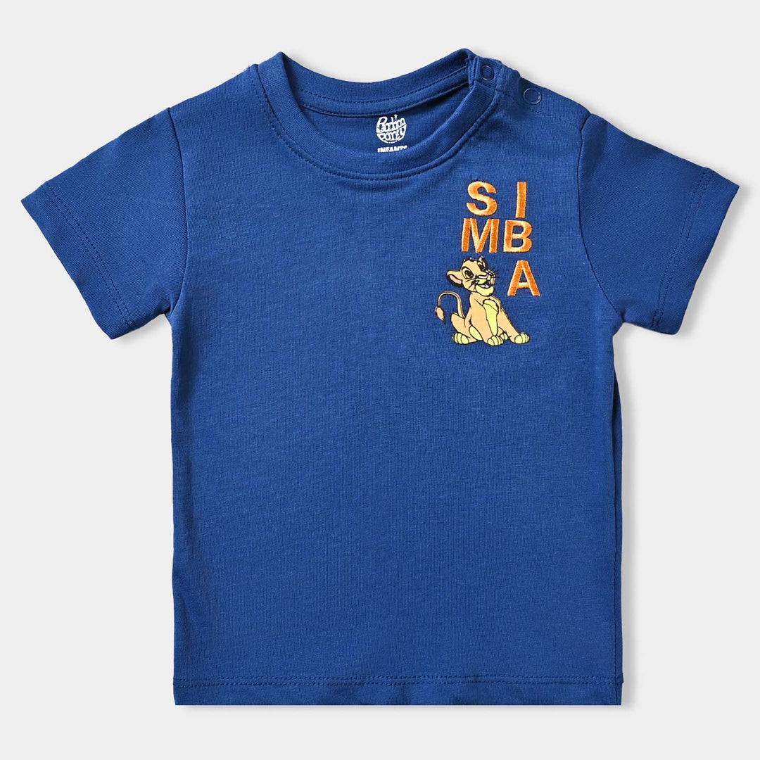 Infant Boys Cotton Jersey Round Neck T-Shirt-Navy Peony