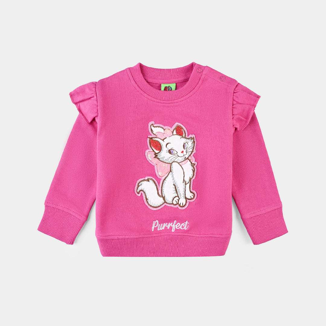 Infants Girls Cotton Terry Sweatshirt Purrfect-Pnk.Pecock