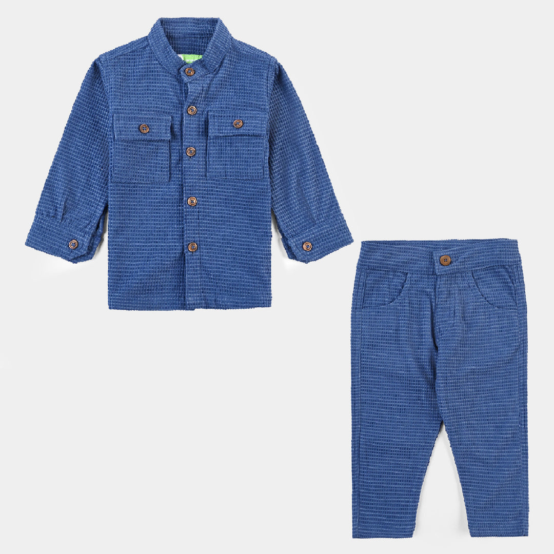 Infant Boys Corduroy Woven Suit F/S Pocket Style-NAVY/BLUE