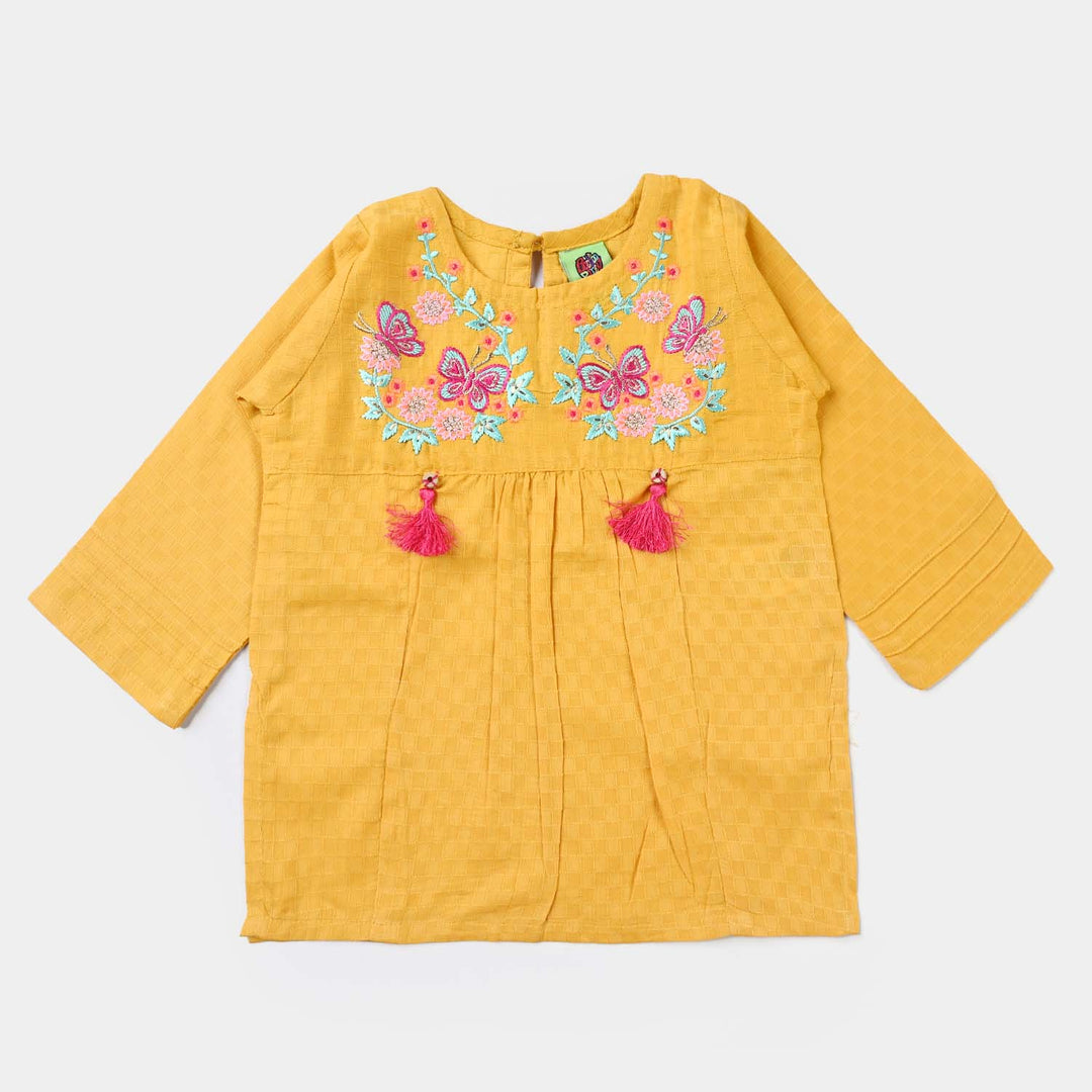 Infant Girls Dobby EMB Kurti Magical Garden-Mustard