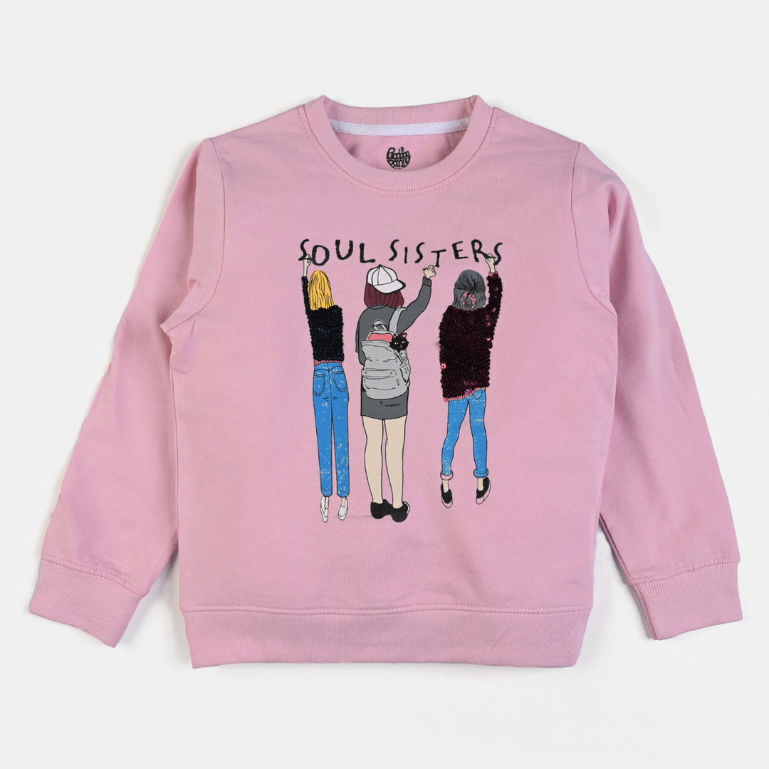 Girls Cotton Terry Sweatshirt Soul Sisters-Orchid Pink