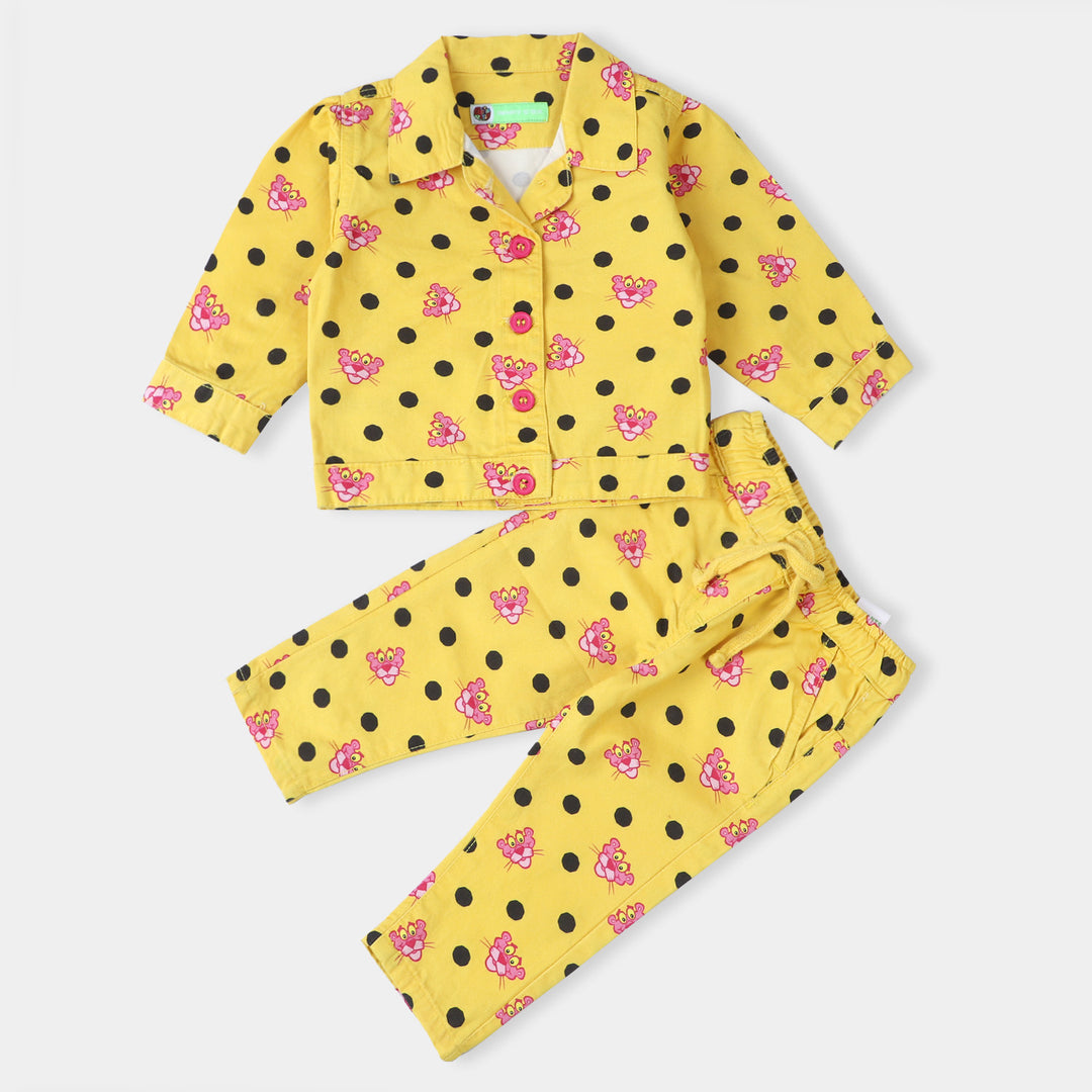 Infant Girls Cotton Co-Ord 2PC Set Pink Panther-Yellow