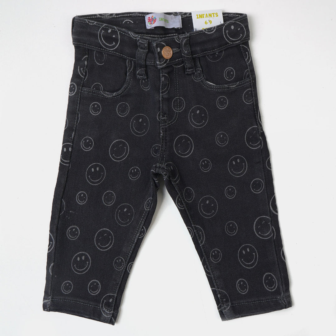 Girls Denim Stretch Pant Glitter Star-Mid Blue