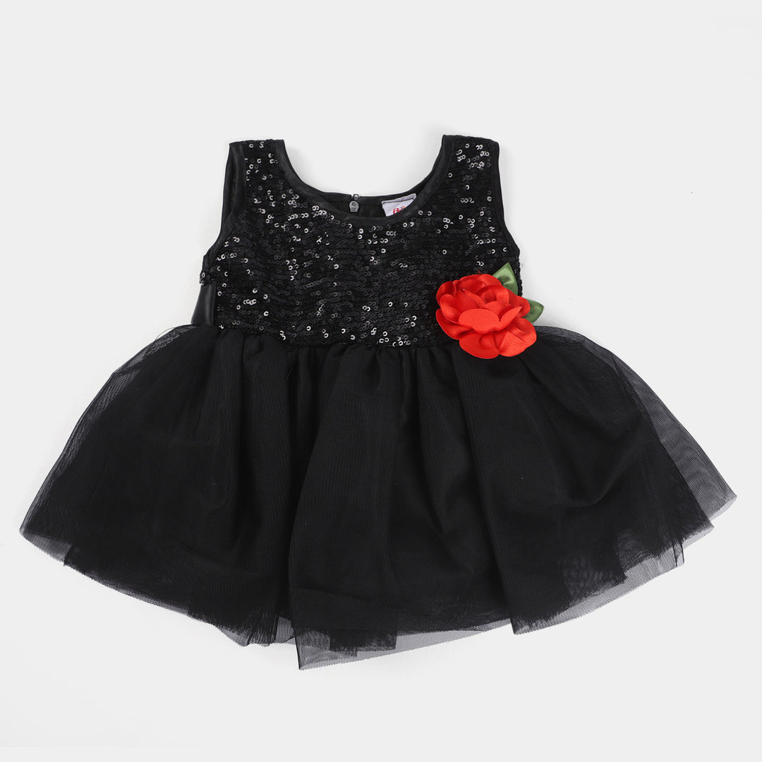 Infant Girls Fancy Frock Sequins Flower-BLACK