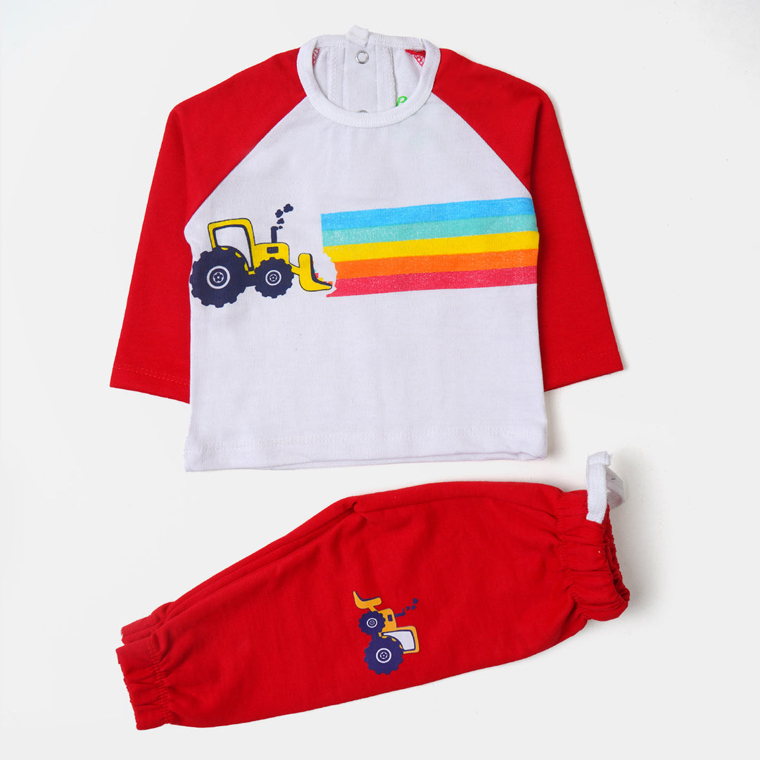 Infant Girls Poly Cotton Jersey Knitted Night Suit-Hot Pink