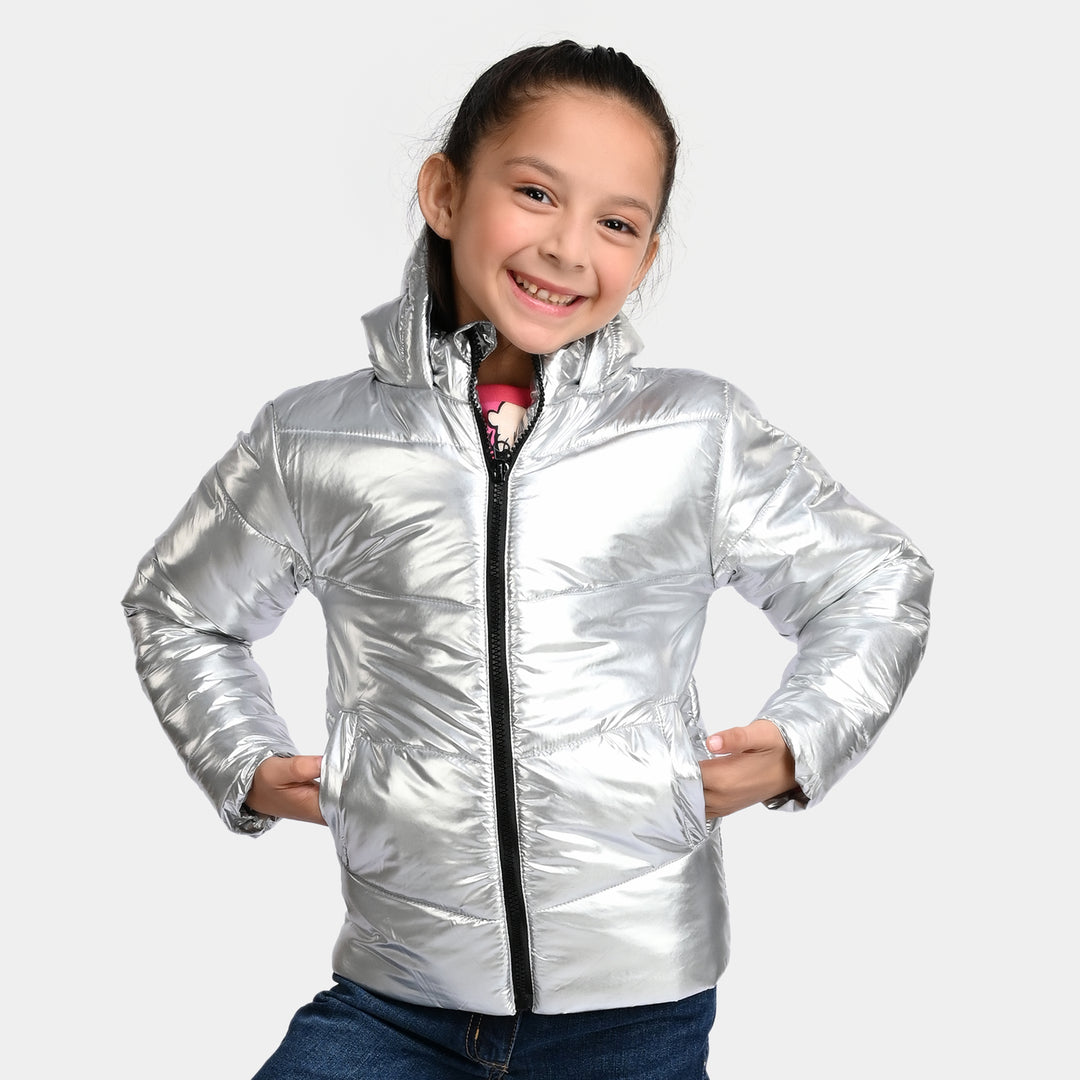 Girls Taffeta Quilted Jacket Silver Vogue-SILVER