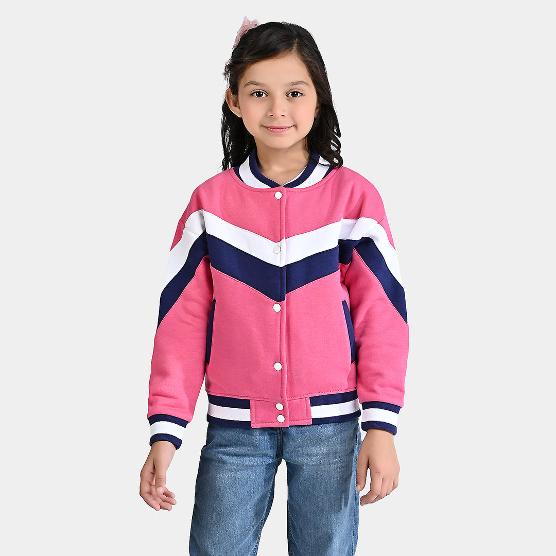 Girls Fleece Knitted Jacket Cut & Sew Bomber-Hot Pink