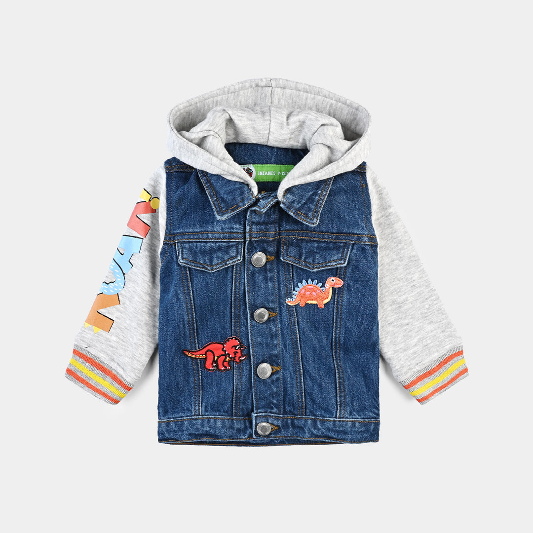 Infant Boys Denim rigid Woven Jacket Dinosaur-Mid.Blue