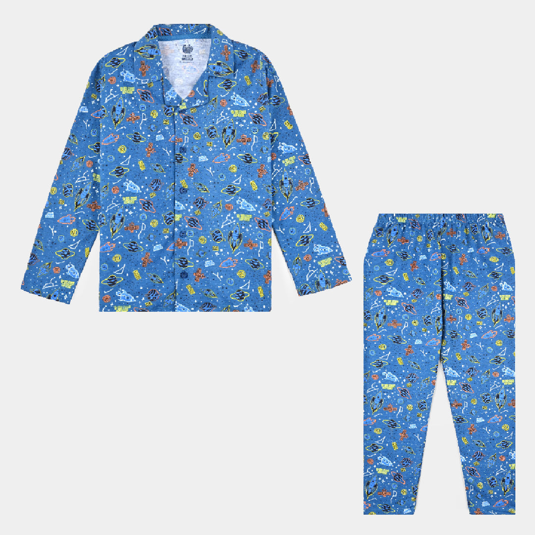Boys Poly Cotton Knitted Nightwear Space-Sea port