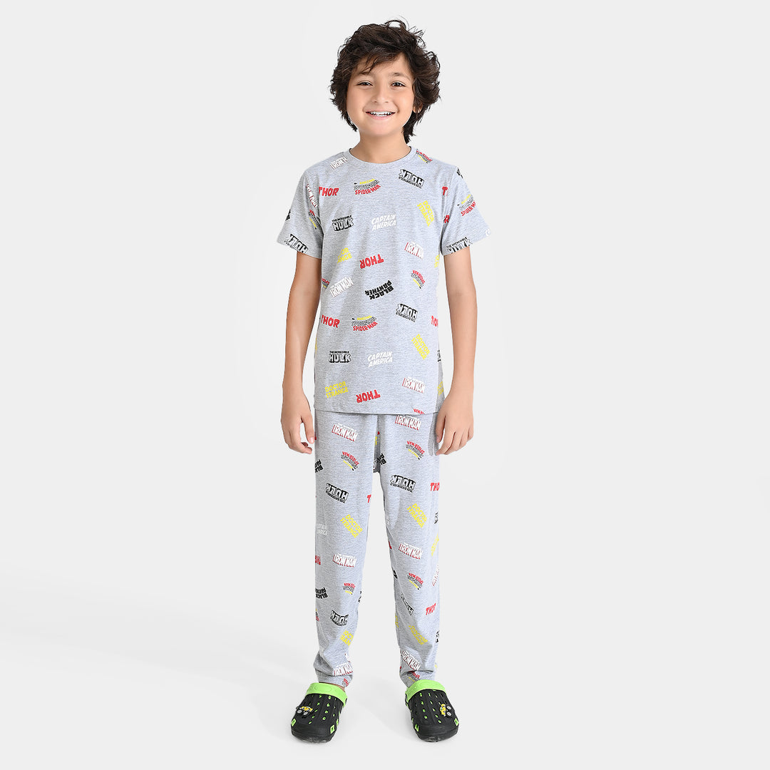 Boys Poly Cotton Jersey Knitted Nightwear Suit-H.grey