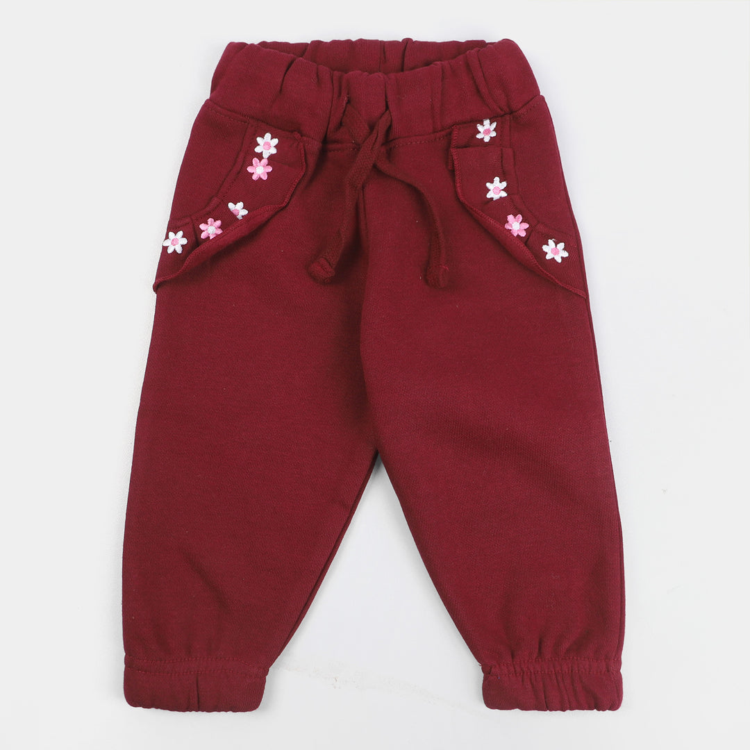 Infant Girls Sleeping Pajama Flower Embroidered-MAROON