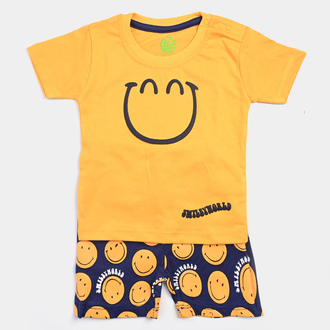 Infant Boys Poly Cotton Jersey Night Wear Suit Smiley-Citrus
