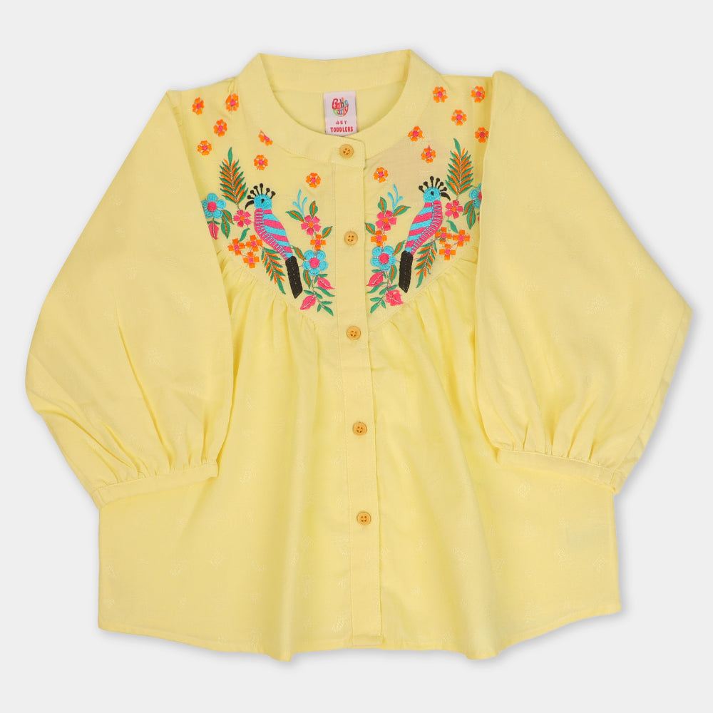 Girls Embroidered Top Floral Gardenia - L-Yellow