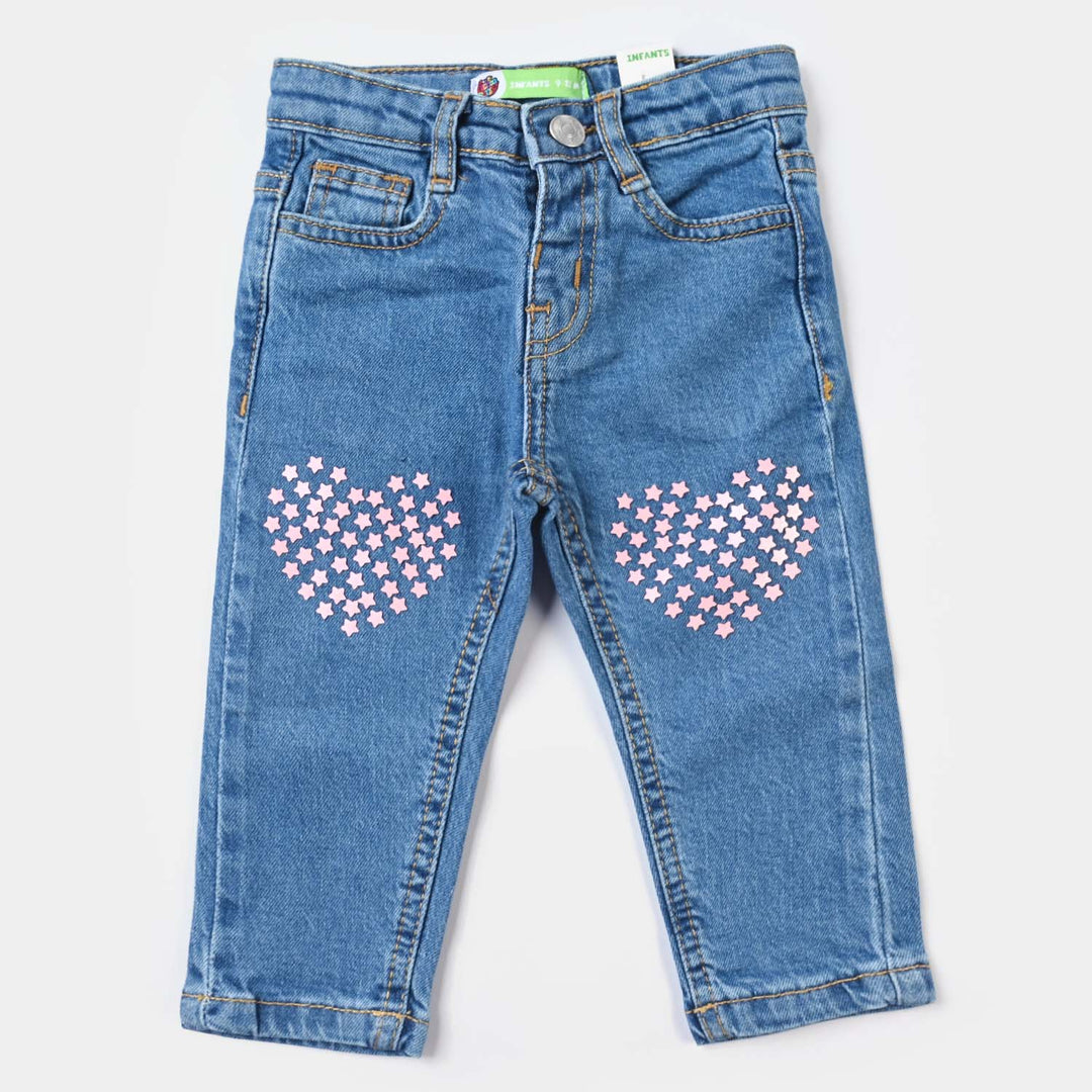 Infant Girls Denim Stretch Pant Stars In Hearts-Ice Blue