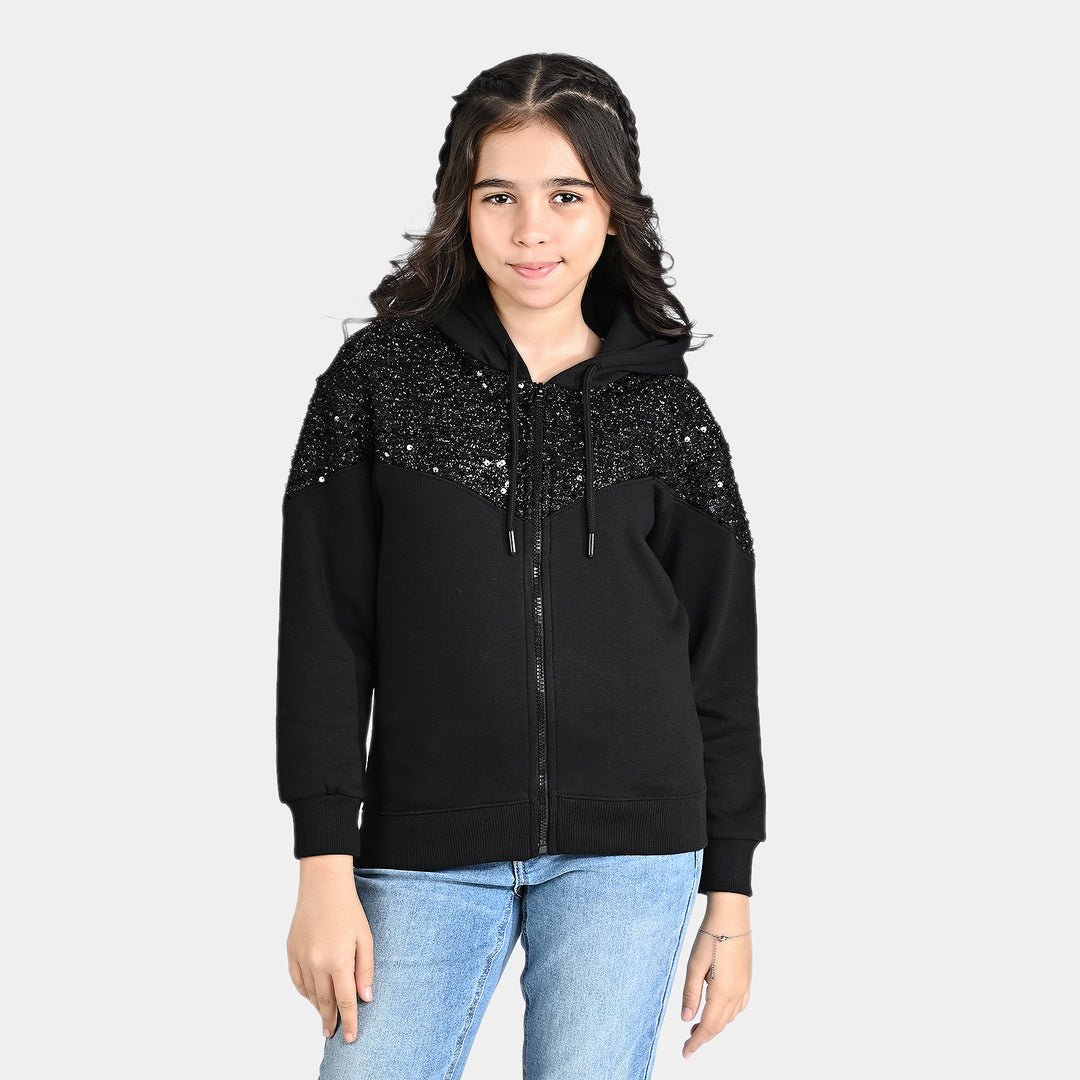 Girls Fleece Knitted Jacket Sequence-Jet.Black
