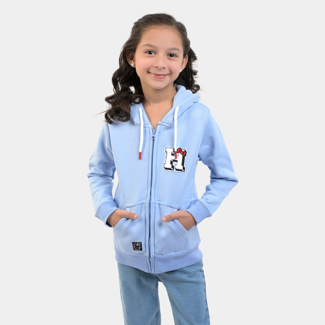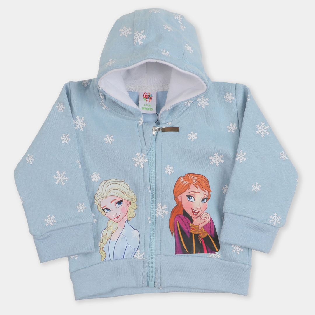 Girls Fleece Knitted Hooded Jacket Character-Blue
