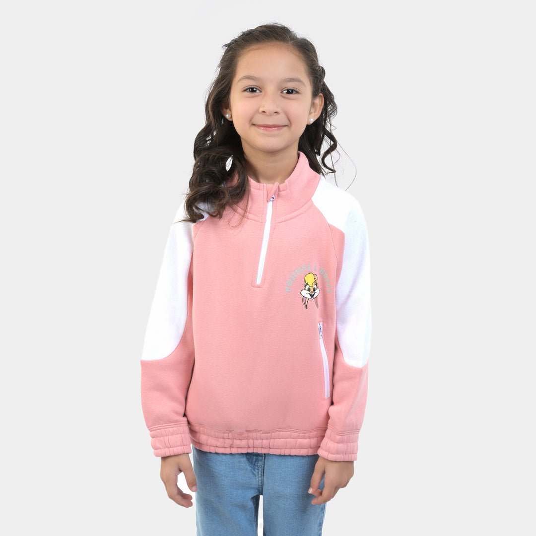 Girls Fleece Knitted Jacket Character -Quartz Pink