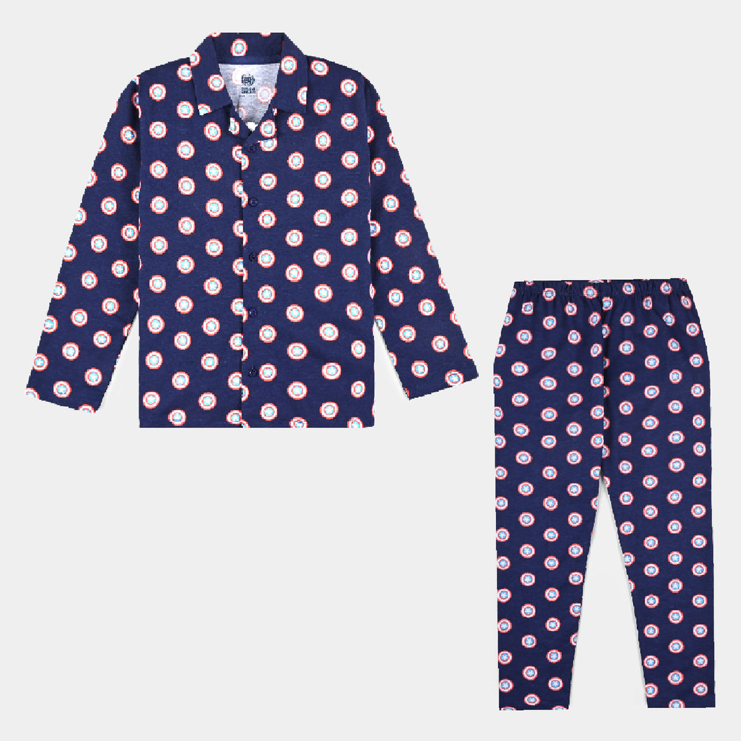 Boys Poly Cotton Knitted Nightwear-Navy Blue