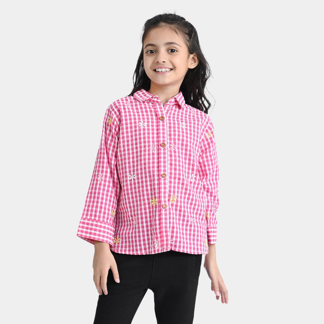 Girls Poly Cotton EMB Top Floral Garden-Pink