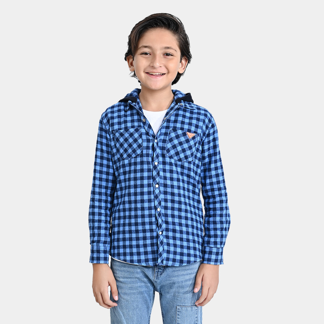 Boys Flannel Casual Shirt F/S (Wat's UP)-Blue