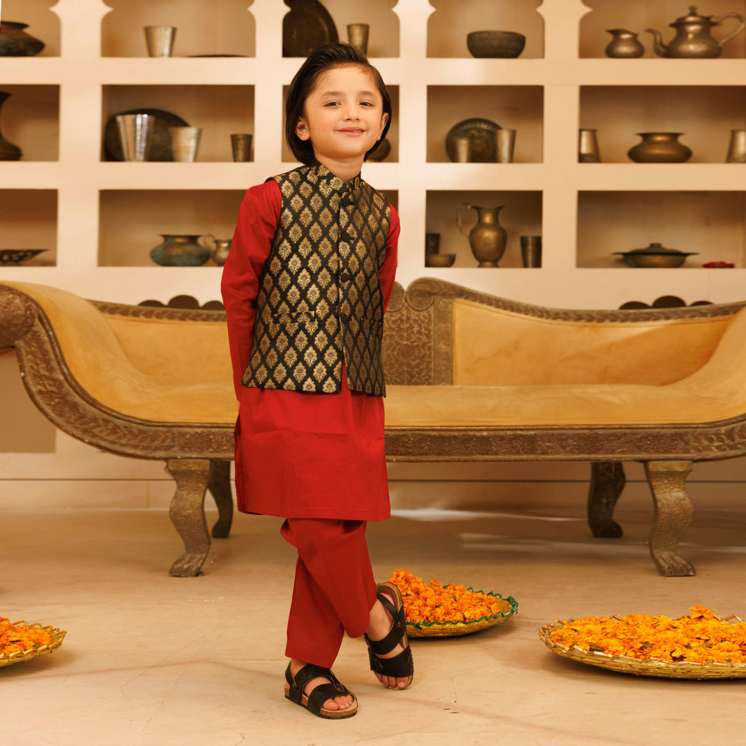 Boys Poly Viscose 3-Piece Suit (Classic)-RED/BLACK