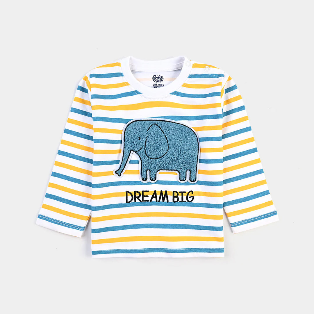 Infant Boys Cotton Jersey Round Neck T-Shirt Elephant-White