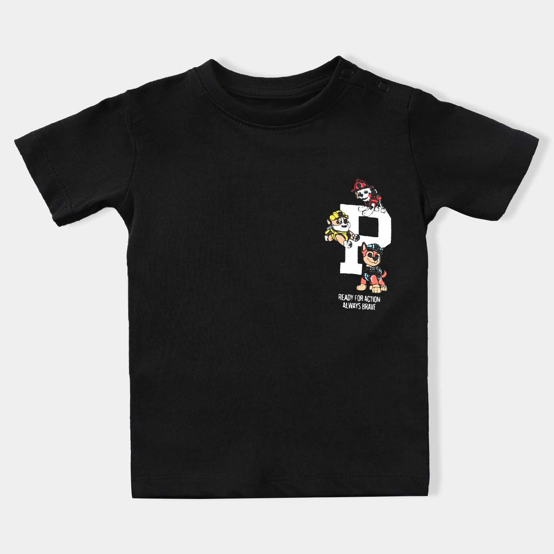 Infant Boys Cotton Jersey Round Neck T-Shirt-Jet Black