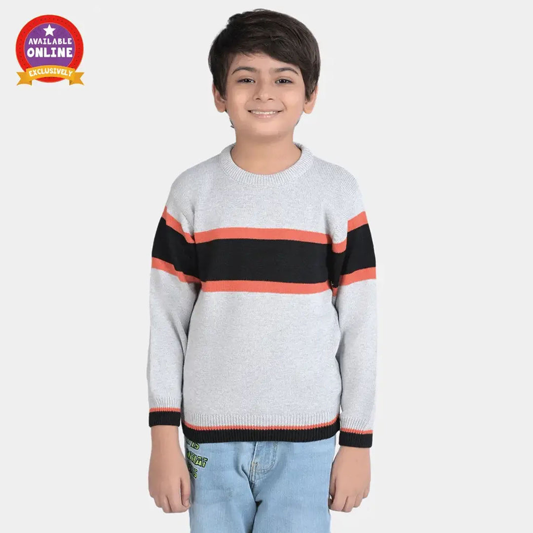 Boys Acrylic Full Sleeves Sweater Striper-Grey/Black