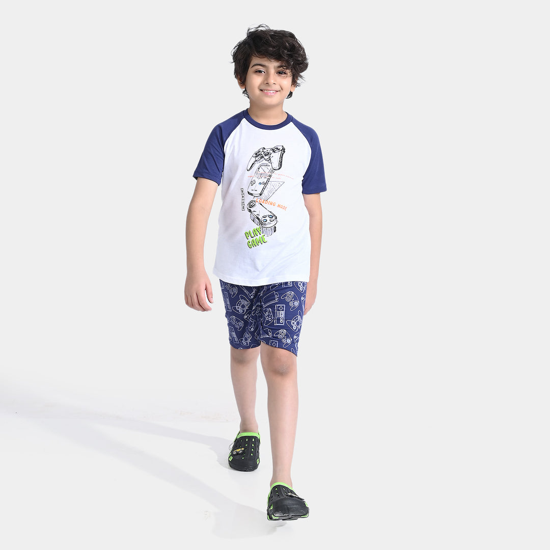 Boys Poly Cotton Jersey Night suit Play Game-NAVY/White