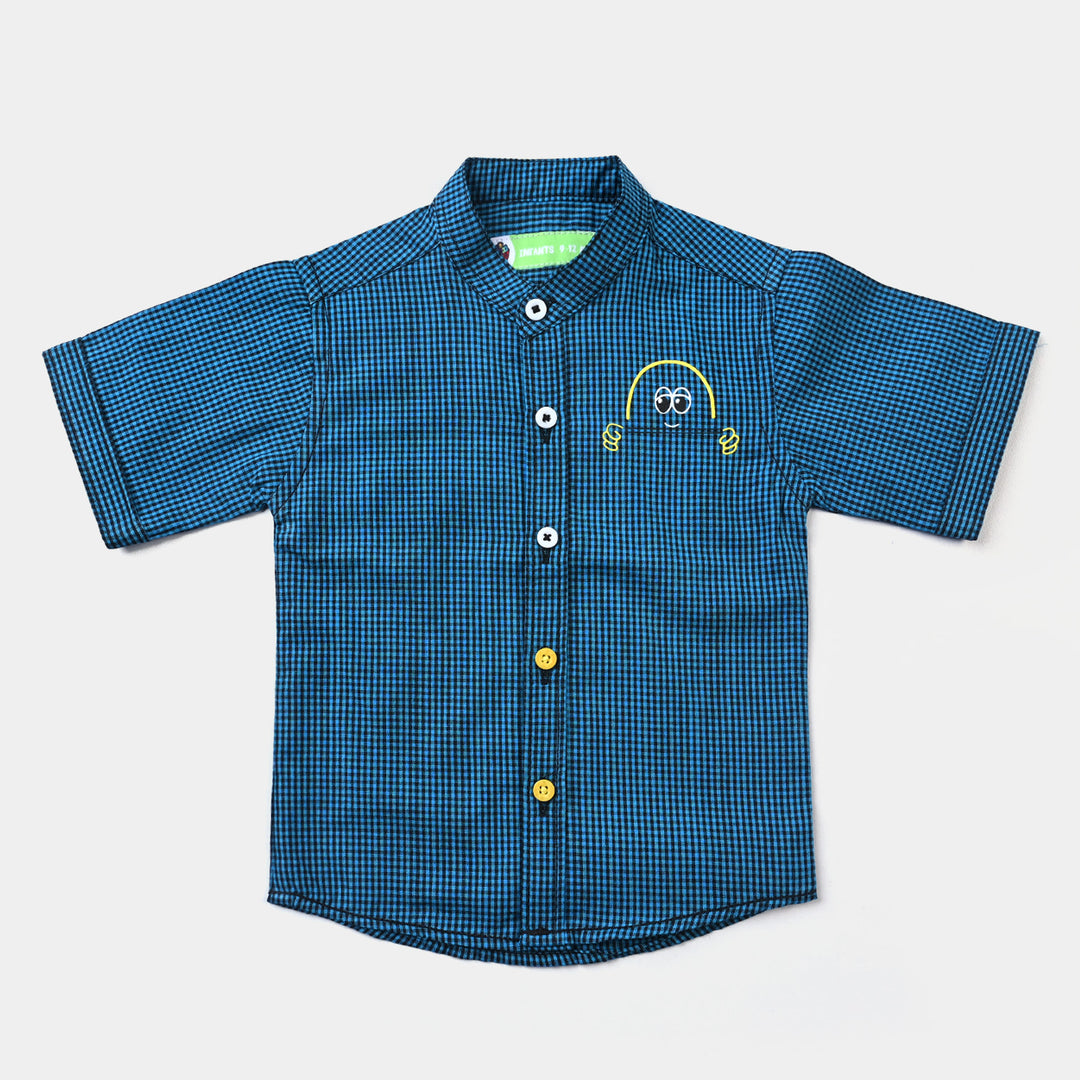 Infant Boys Yarn Dyed Basic Casual Shirt (Super Cool)-Blue