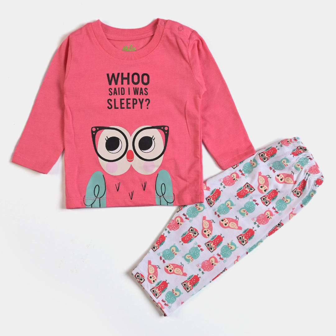 Infant Girls Knitted Night Suit Sleepy Owl-Camellia