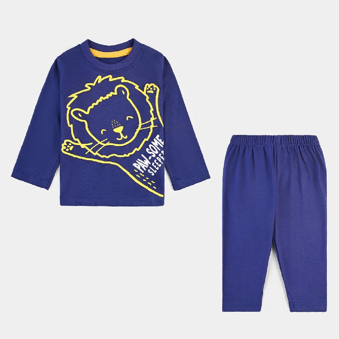 Infant Boys Cotton Jersey Knitted Night Suit-Navy Blue