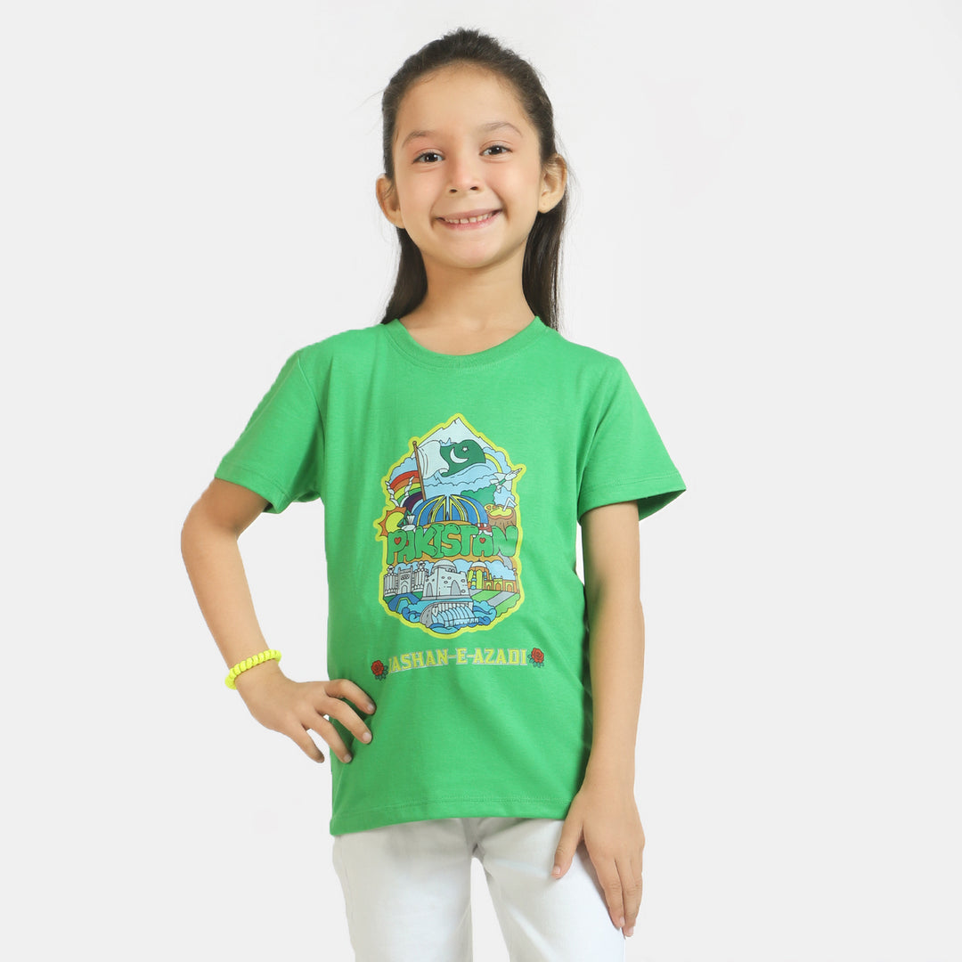 Girls T-Shirt Jashn-E-Azadi Pakistan CLASSIC GREEN